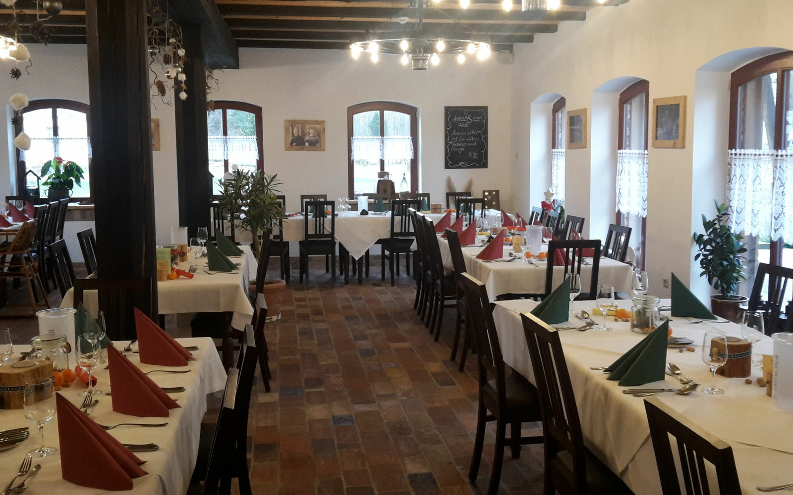 Na jídelním lístku najdete regionální speciality, jako např. srbské svatební menu, brambory na loupačku s tvarohem a lužickým lněným olejem, srbskou svatební polévku, „Tafelspitz“ s křenovou omáčkou, lužickou specialitu „Teichelmauke“, pokrmy z pohanky, lužického kapra nebo bezovou polévku. Veškerá jídla se připravují z regionálních surovin.