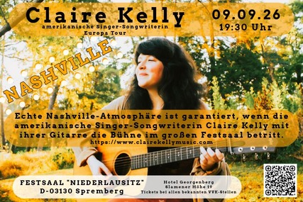 Echte Nashville-Atmosphäre ist garantiert, wenn die amerikanische Singer-Songwriterin Claire Kelly mit ihrer Gitarre die Bühne im Großen Festsaal betritt.