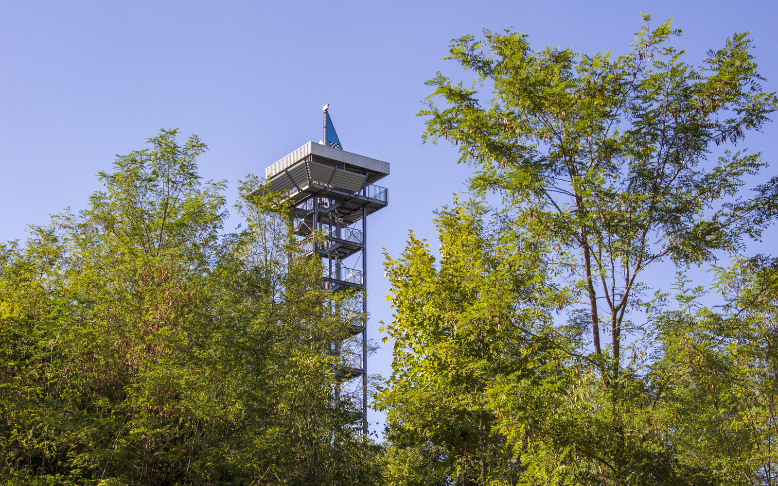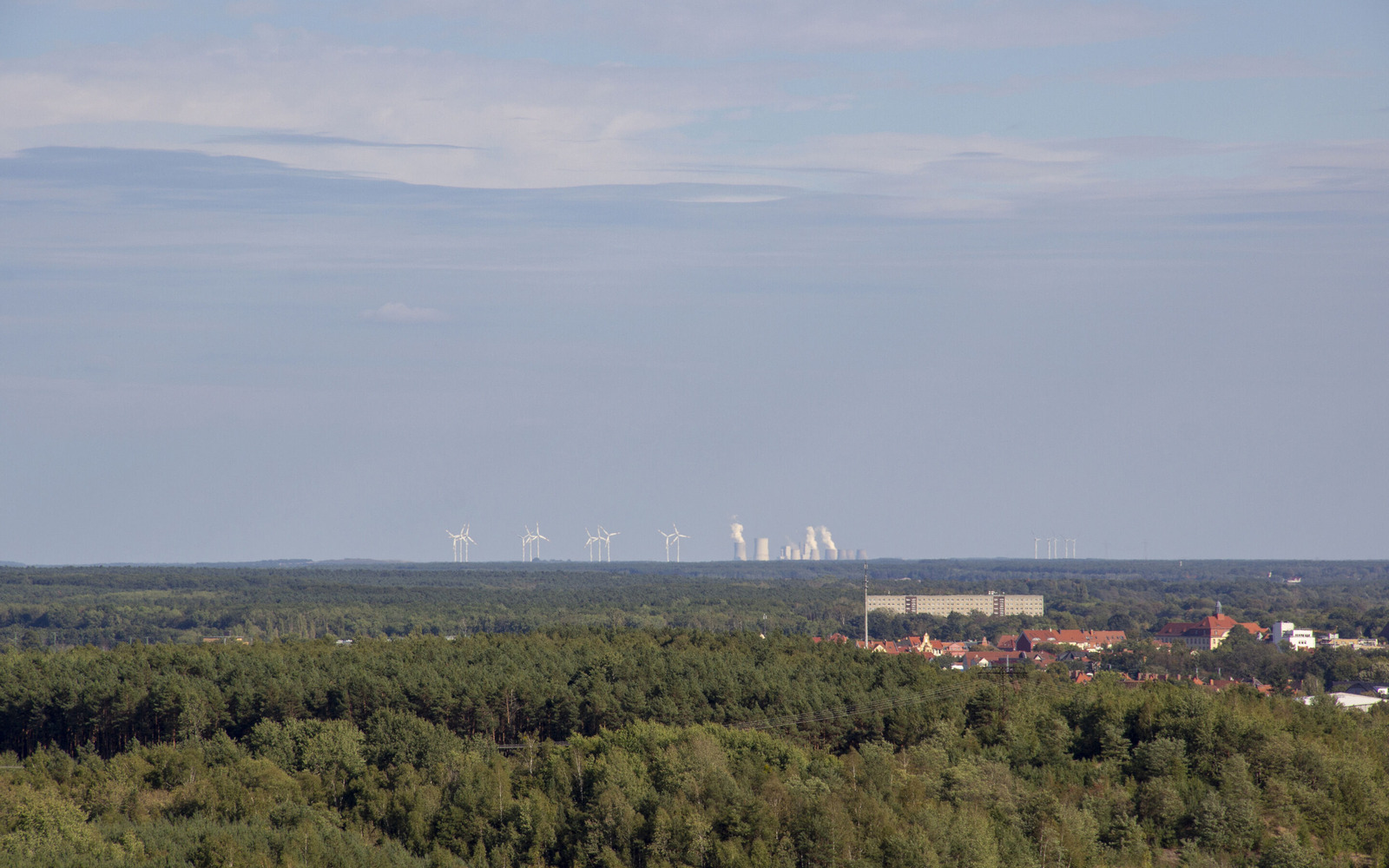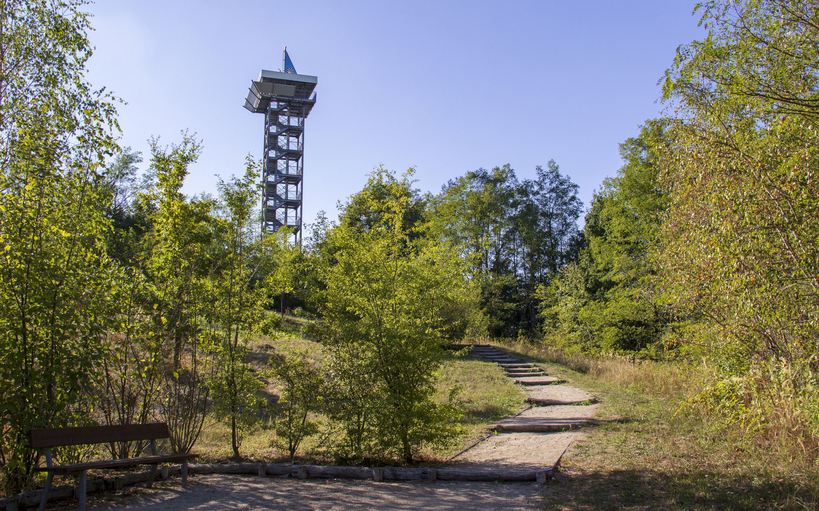 The “Meurostolln” observation tower was constructed in 2003 on the grounds of a former briquette factory. 144 steps lead up to the 27-metre-high viewing platform. The tower stands on an elevation and provides a view of the surrounding landscape, in particular the Lausitzring, the bucket wheel excavator landmark, the Meuro solar park, the Klettwitz wind park, and Senftenberg with its lake. On especially clear days it is possible to see the power stations in Schwarze Pumpe and Boxberg.
