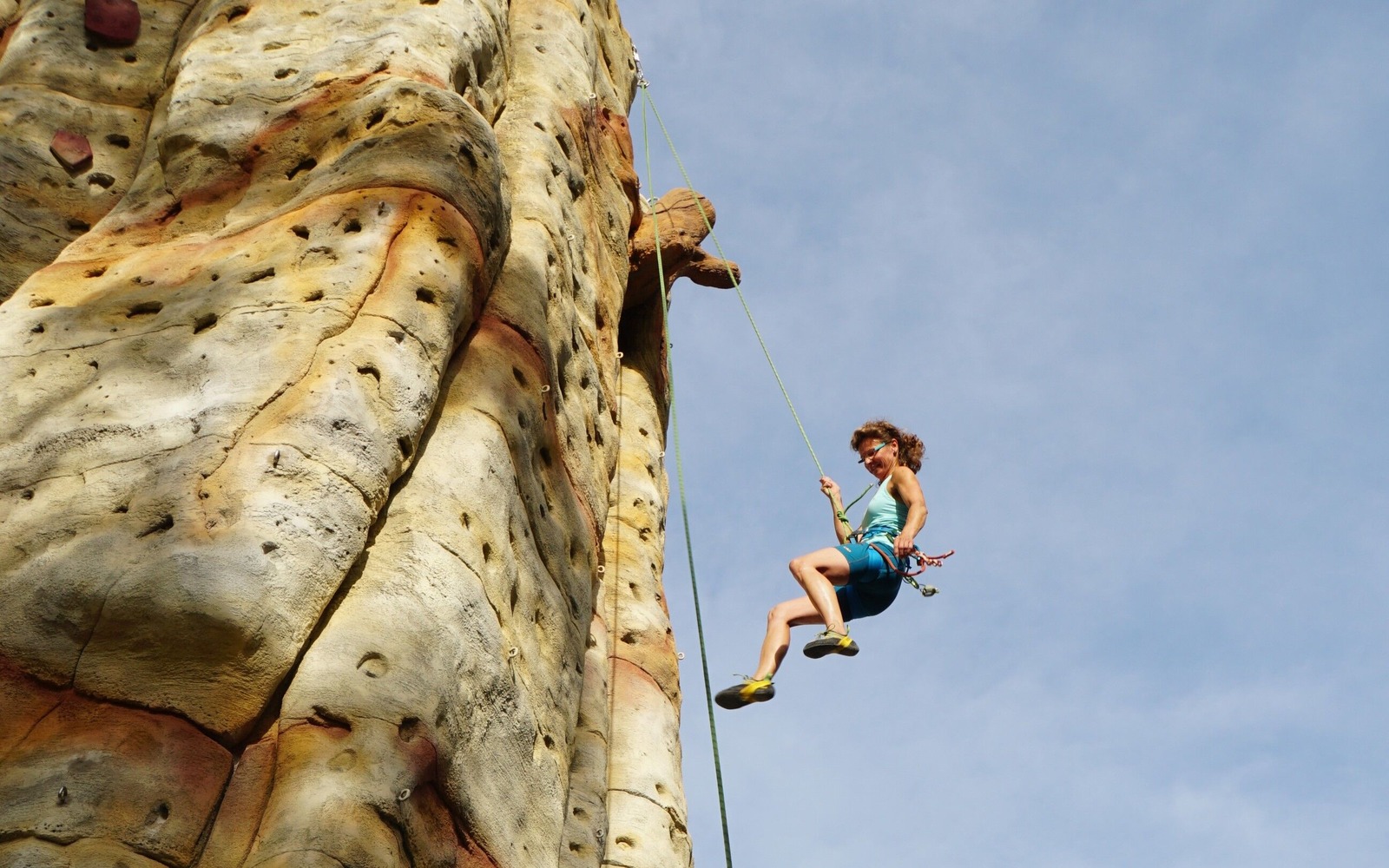 With a base area of 7.5 x 3.5 metres and a height of 13 metres, a total climbing area of approx. 400 m² was created. 161 safety hooks, 15 deflection points, a Saxon abseil ring and, of course, a summit book were installed. The spacious summit area invites you to linger and look around.